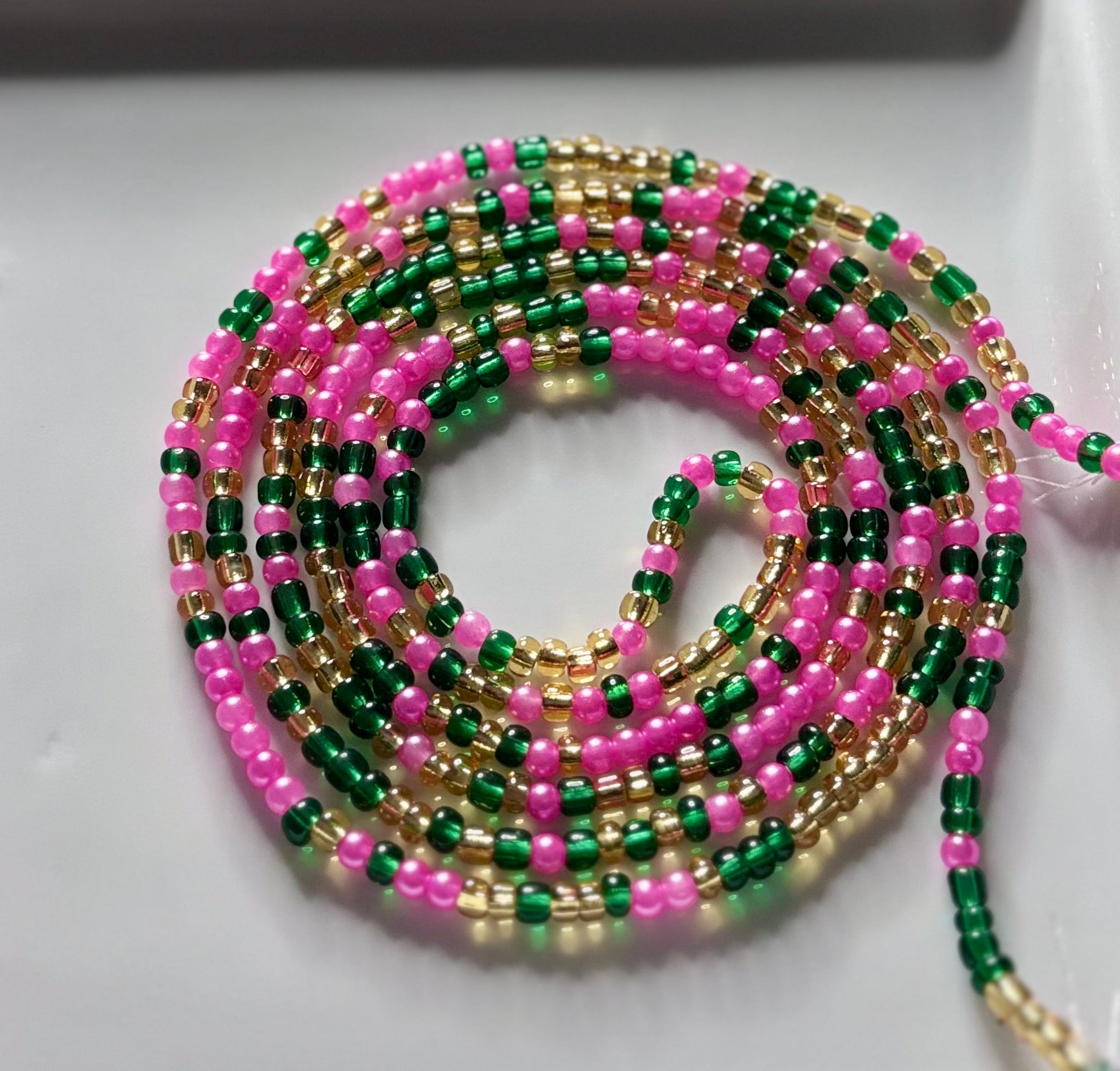 A strand that speaks to the power of tradition and the beauty of becoming. Legacy Lineage honors the enduring impact of Alpha Kappa Alpha Sorority, Inc. with a rhythmic dance of pink, green, and gold — each bead a step in the journey, each color a symbol of grace, growth, and excellence. Wear it to celebrate your roots and radiate your rise. 💗💚
