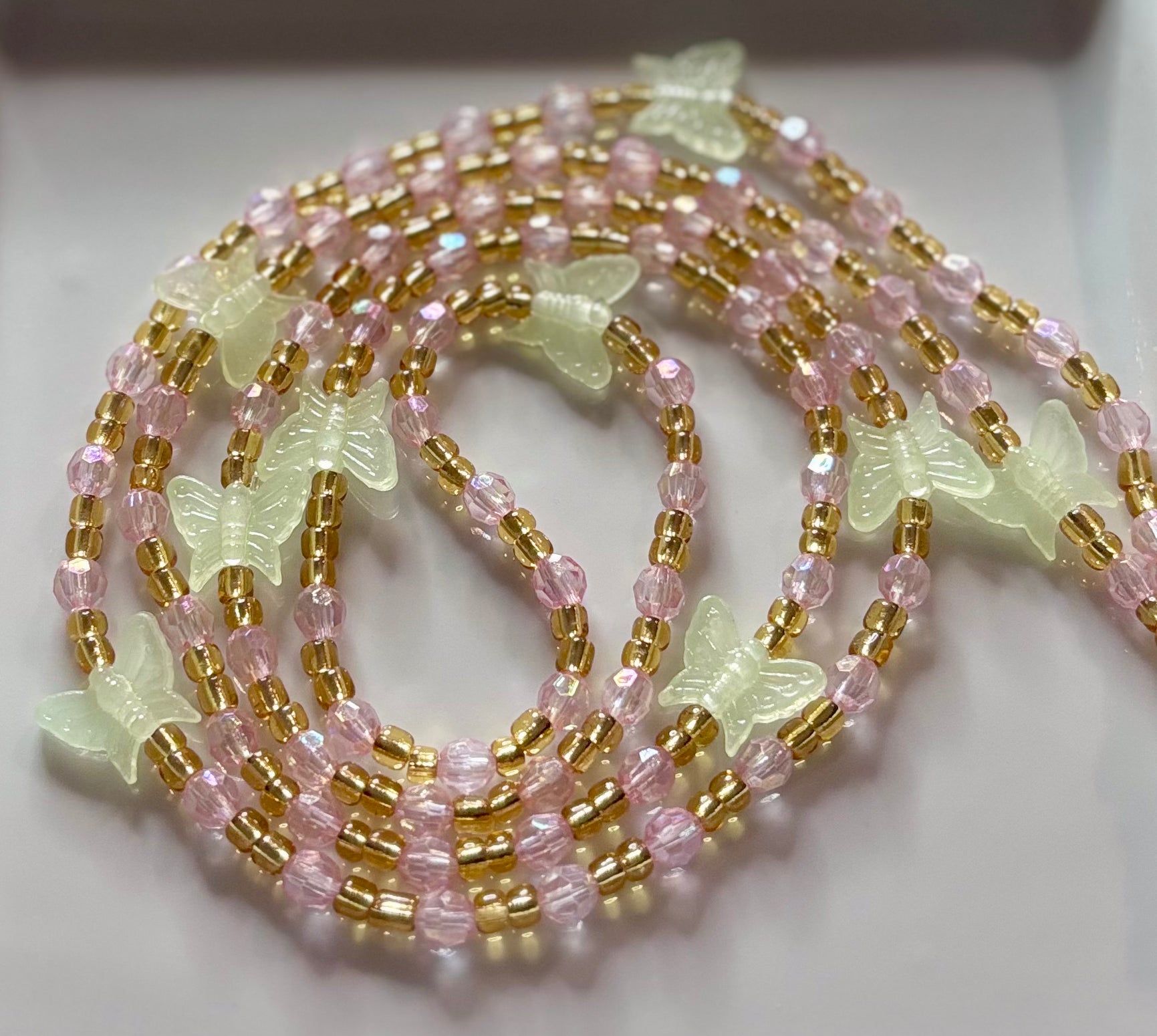 This strand is a sparkling tribute to the radiant light of sisterhood. Featuring a luxurious gold base interspersed with faceted apple green and salmon pink crystals, it is designed to catch every glimmer of light. It represents the "Luminous" impact Alpha Kappa Alpha women have on the world—bold, brilliant, and impossible to ignore.🩷💚